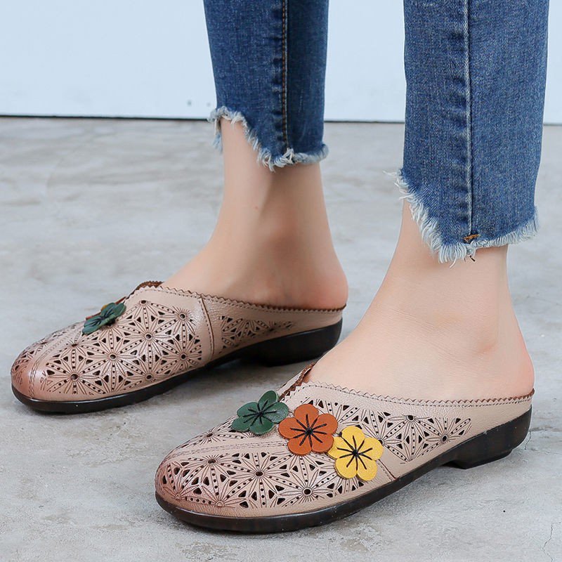 รองเท้าแตะรัดส้นแบบเปิดหัว ฉลุลาย ติดพลอยเทียม